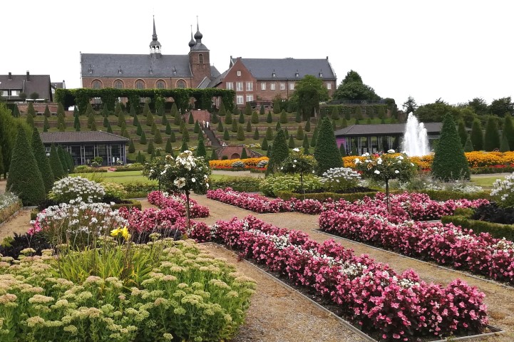 Die barocken Terrassengärten sind seit der Restaurierung von 1989/90 jederzeit zu besuchen, historische Erläuterungen dazu in der Halle auf den Grundmauern der ehemaligen Orangerie. Der Kräutergarten vom Kloster Kamp bietet Erholungsraum und beschilderte Anschauungspflanzungen. Um den Platz in der Mitte sind 4 Hauptbeete angelegt, die Feuer, Wasser, Luft & Erde symbolisieren: ein Reich von Bibelpflanzen, Bienenweiden, Küchenkräutern, bis hin zu Hildegard-Heilpflanzen.